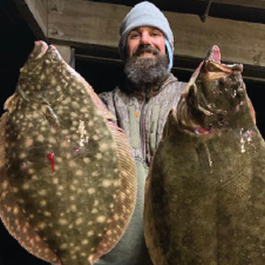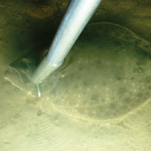 Once your target fish has been sighted, then next step is straight forward… you stab it with a special spear and lift it into the boat. You can only catch flounder that are 15 inch minimum from tip to tail in length and you can only catch up to 5 per person a night. As your guide, Rick can eyeball the fish and tell you which ones are good to catch and which ones to leave alone. There is no time limit on your nighttime gigging trip, so clients usually fish until they max out their catch limit.
