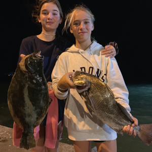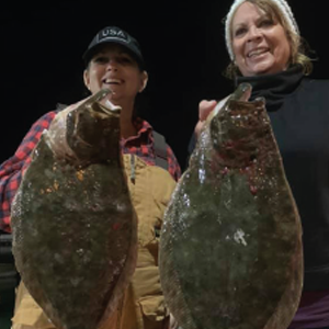 Rick takes up to 4 adults out at a time, and the boat leaves just after sunset. He navigates to the areas of the shallows where he knows flounder hang out at night to feed. Though flounder spawn in 90-100 feet of water, they eat in the shallows where they bury themselves under the sand and pounce on their prey, primarily shrimp and other small fish. They can be tricky to spot! Check out The Flounder Finder Game on Rick’s website and you will see what I mean. He shows you what to look for as the flounder camouflage themselves under the sand, and his lights illuminate the ocean floor, so you can see your prey while your flounder is ambushing his!